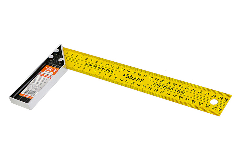 Металлический угольник с окрашенной поверхностью и двухсторонней разметкой полотна—предназначен для разметки и проверки прямых углов, а также для проверки угла 45 градусов при обработке и сборке изделий.