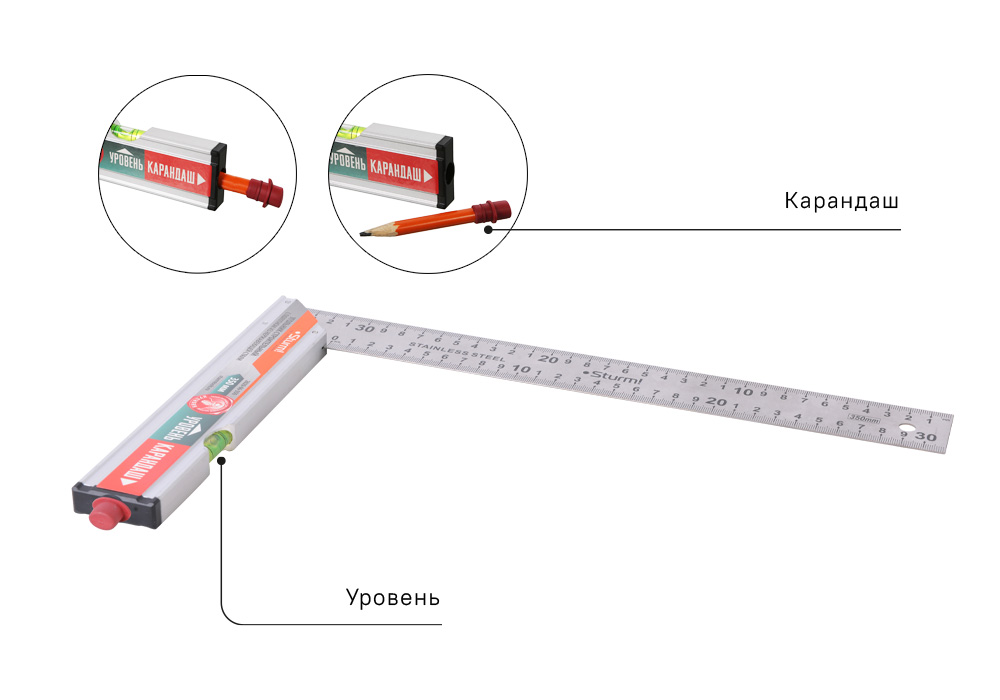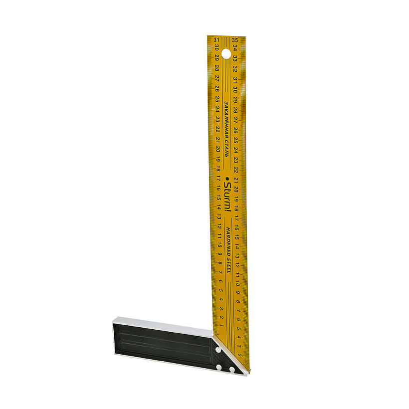 Металлический угольник с окрашенной поверхностью и двухсторонней разметкой полотна—предназначен для разметки и проверки прямых углов, а также для проверки угла 45 градусов при обработке и сборке изделий. Шкала нанесена гравировкой с двух сторон, что добавляет удобство при работе. Угольник обладает прочностью и долговечностью, так как полотно изготовлено из закаленной нержавеющей стали, а рукоятка из алюминия. Широкое основание и удобная алюминиевая рукоятка упрощают работу с инструментом.