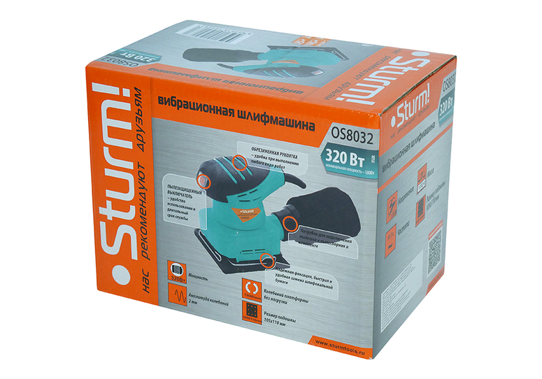 * Вибрационная шлифовальная машина * Пылесборник * Шлифовальная бумага (110х145 мм) * Инструкция по эксплуатации * Упаковка