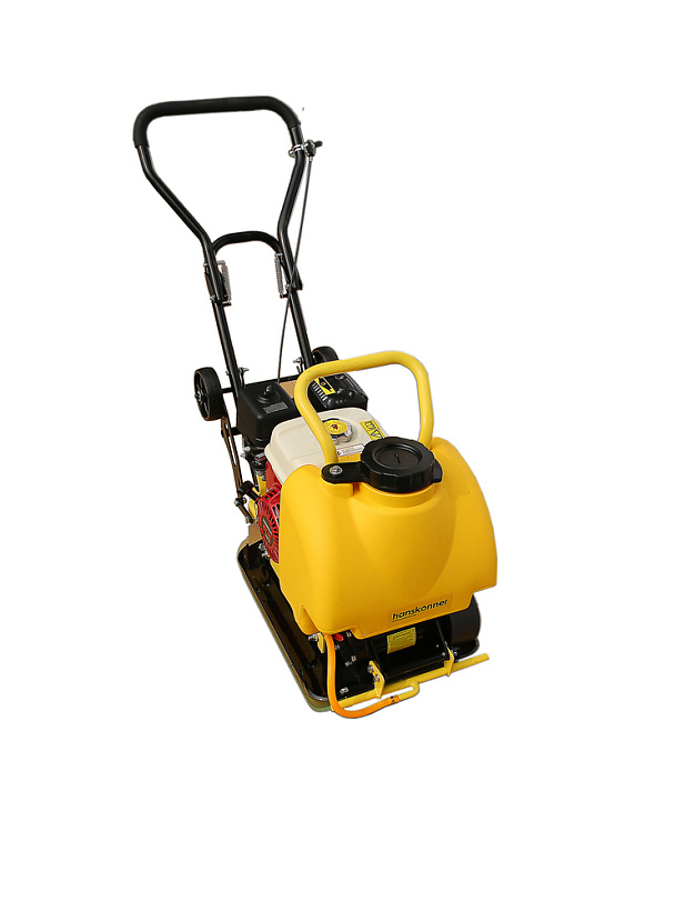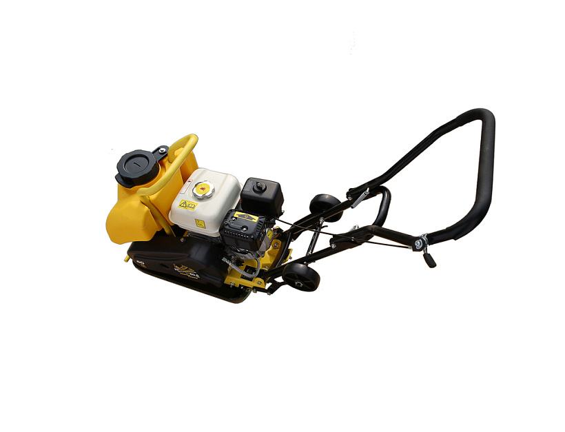 Двигатель Honda GX 160. Непревзойденная мощность, экономичность и долговечность, а также высокая надёжность при длительном сроке службы. * В конструкцию виброплиты вмонтирована система подачи воды на трамбовочную плиту для работ по асфальту с вместительным баком на 13 литров * Наличие в комплекте высококачественного силиконового коврика для работ по тротуарной плитке является существенным преимуществом и позволяет сразу после приобретения приступать к работе с виброплитой без дополнительных затрат. * Трамбовочная плита из конструкционной высокоуглеродистой стали имеет закругленные вверх края, что исключает образование наплывов и прочих неровностей на обрабатываемой поверхности. * Откидные колеса позволяют легко перемещать виброплиту.