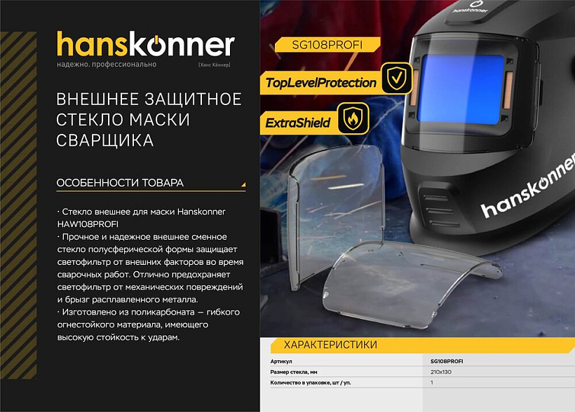 Защитное стекло маски сварщика Hanskonner SG108PROFI