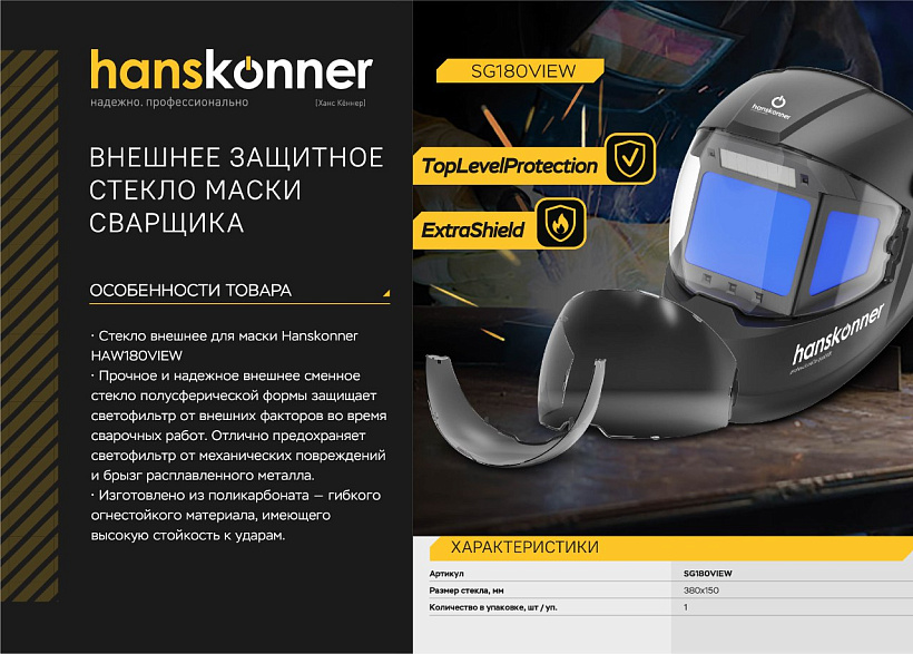 Защитное стекло маски сварщика Hanskonner SG180VIEW